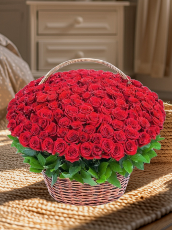 125 Red Roses in Basket