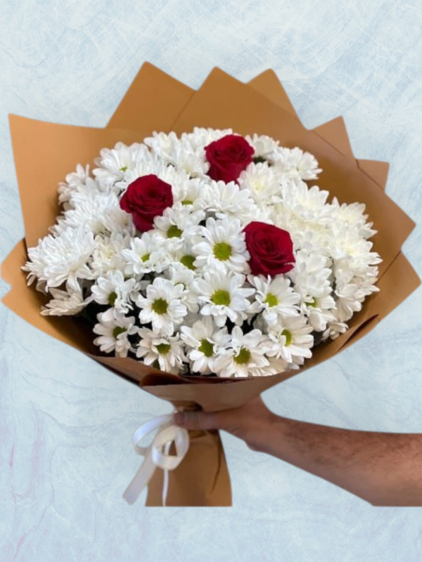 Krizantemler ve 3 Adet Gül